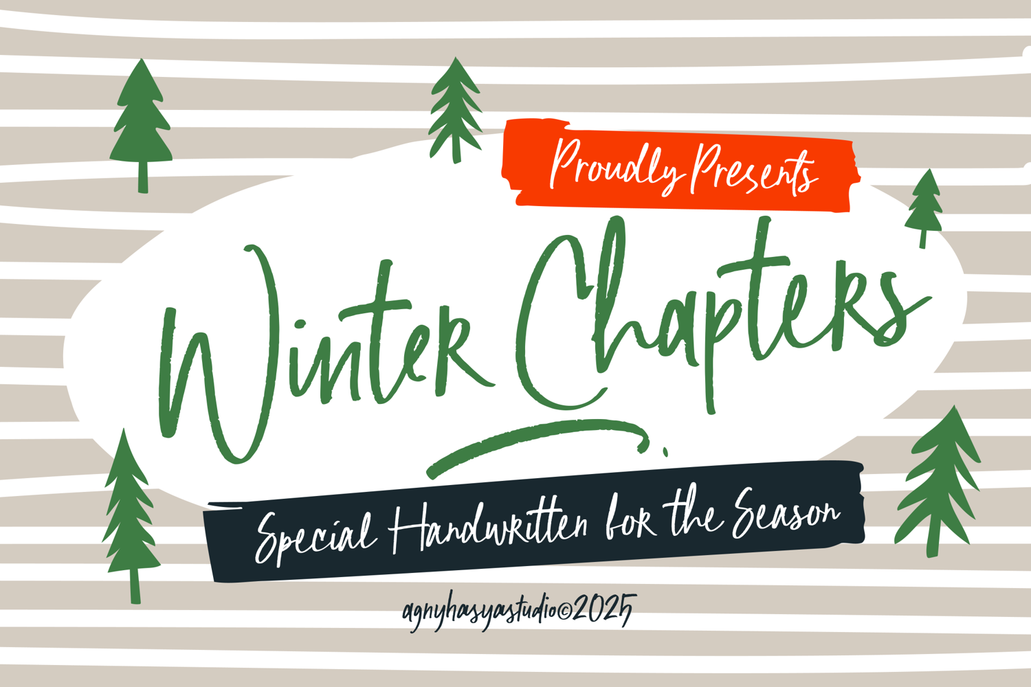 Ideal for winter events, Christmas, seasonal promotions, branding, holiday quotes, product packaging, greeting cards, social media posts, and standout display text. Winter Chapters brings a soft, inviting personality that feels joyful and authentic.