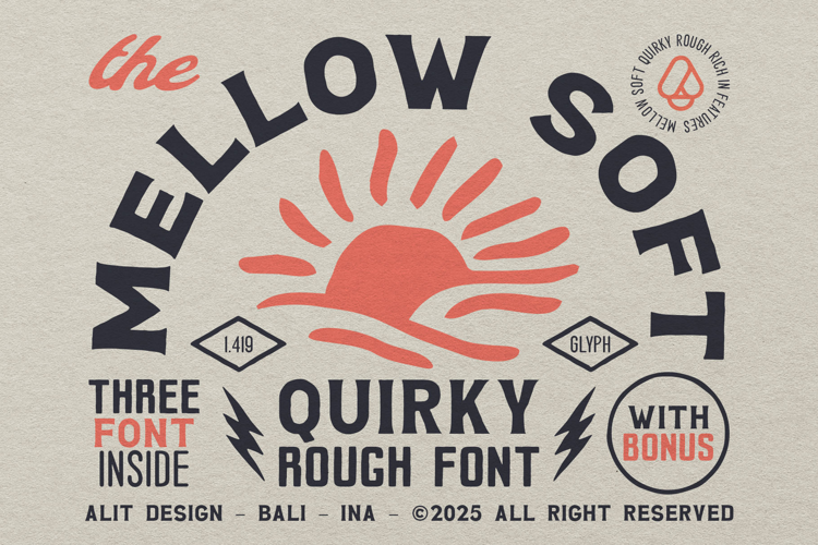 Introducing Mellow Soft Typeface, a font family that embodies the spirit of laid-back days, salty air, and rugged adventures. Inspired by vintage travel posters and retro surf culture, Mellow Soft brings a quirky, hand-drawn charm to your design toolkit.