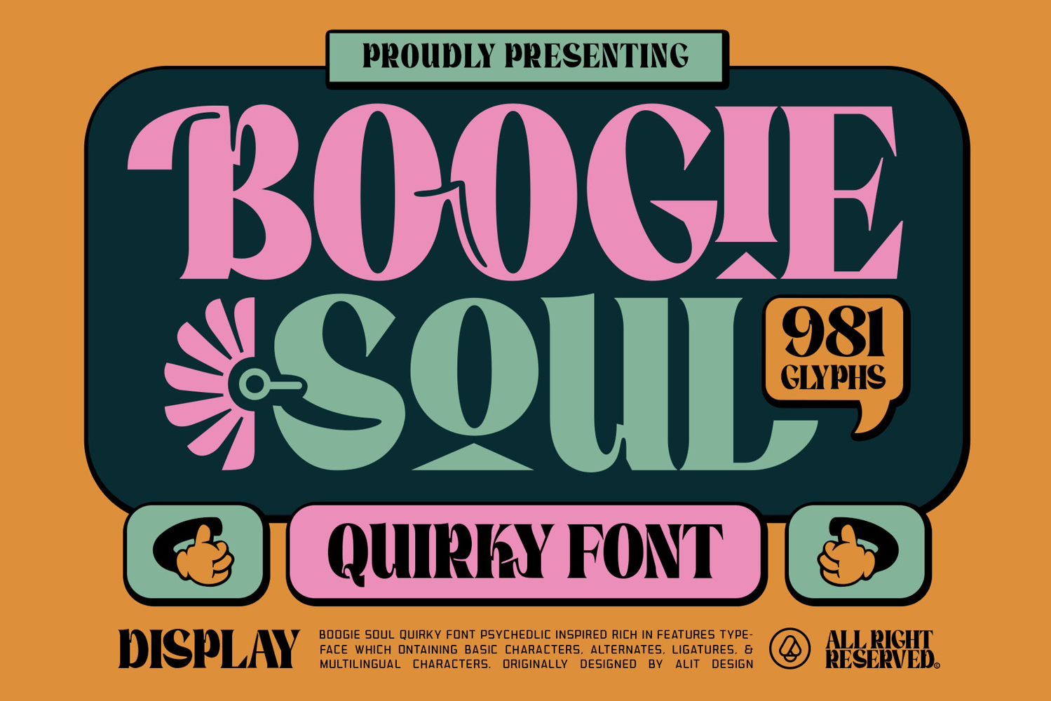 Introducing Boogie Soul, a typographic time machine that captures the free-spirited energy of the 1960s and the funky bold aesthetics of the 1970s. This isn't just a font; it is a complete design system built to inject personality, quirkiness, and pure "soul" into your visual projects.