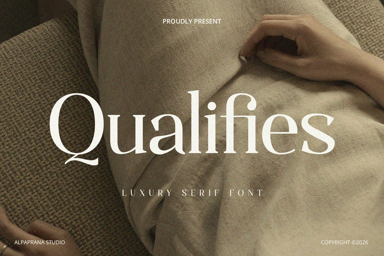 Qualifies is serif font with elegant and modern feels. It will be perfectly used for Branding, Logo Design, Lettering, Logotype, Clothing, Poster, magazine, packaging, posters, shopping bags, t-shirts, book covers, photography, special events and other design project.