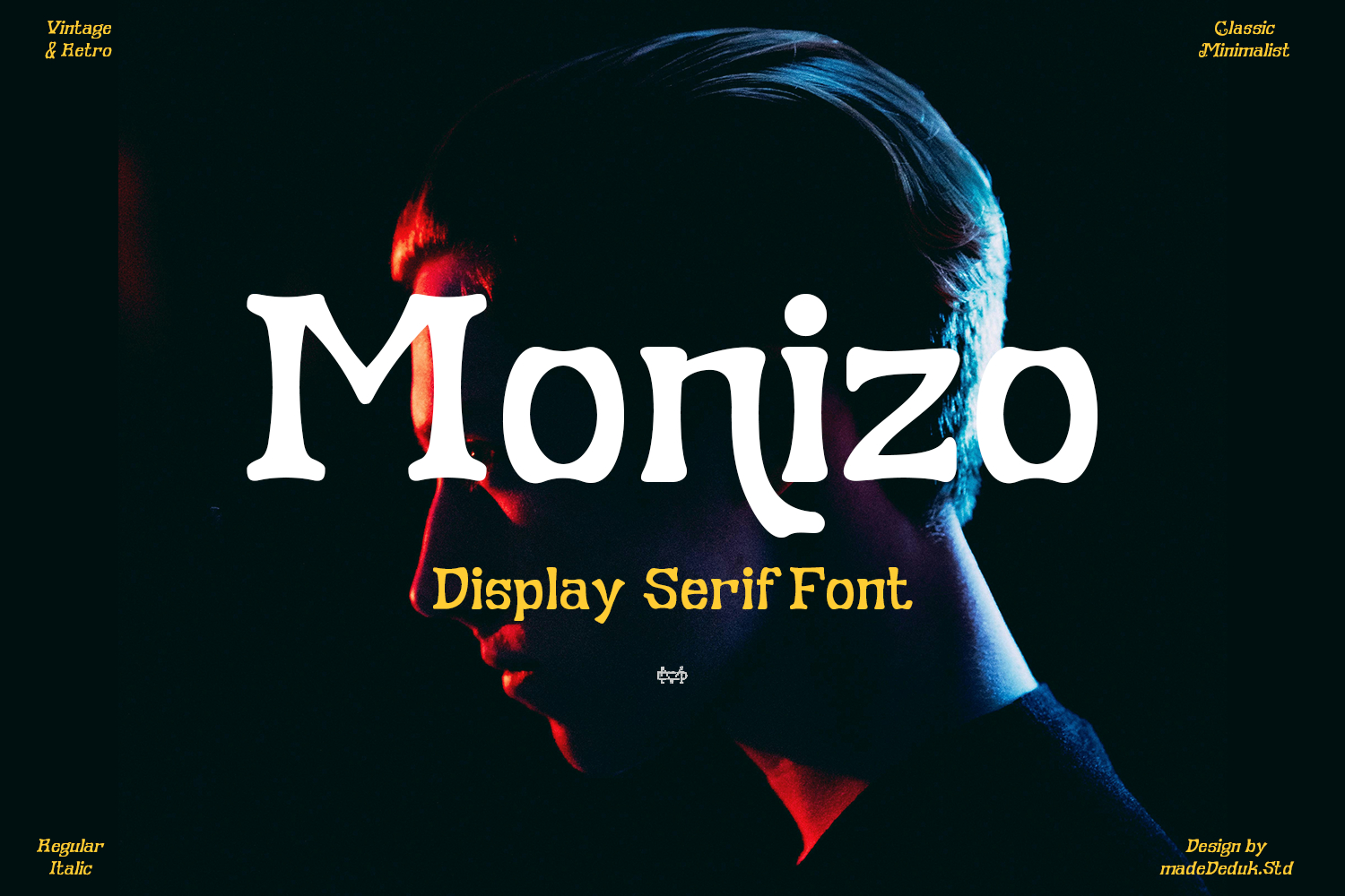 Monizo is a display serif with 80's retro style serif and refined you can explore and combine creating rhythm for comfortable reading. Come with single weight, legible and expressive shapes. A lot of stylish alternates characters and ligature will makes this font suitable for your any project design.