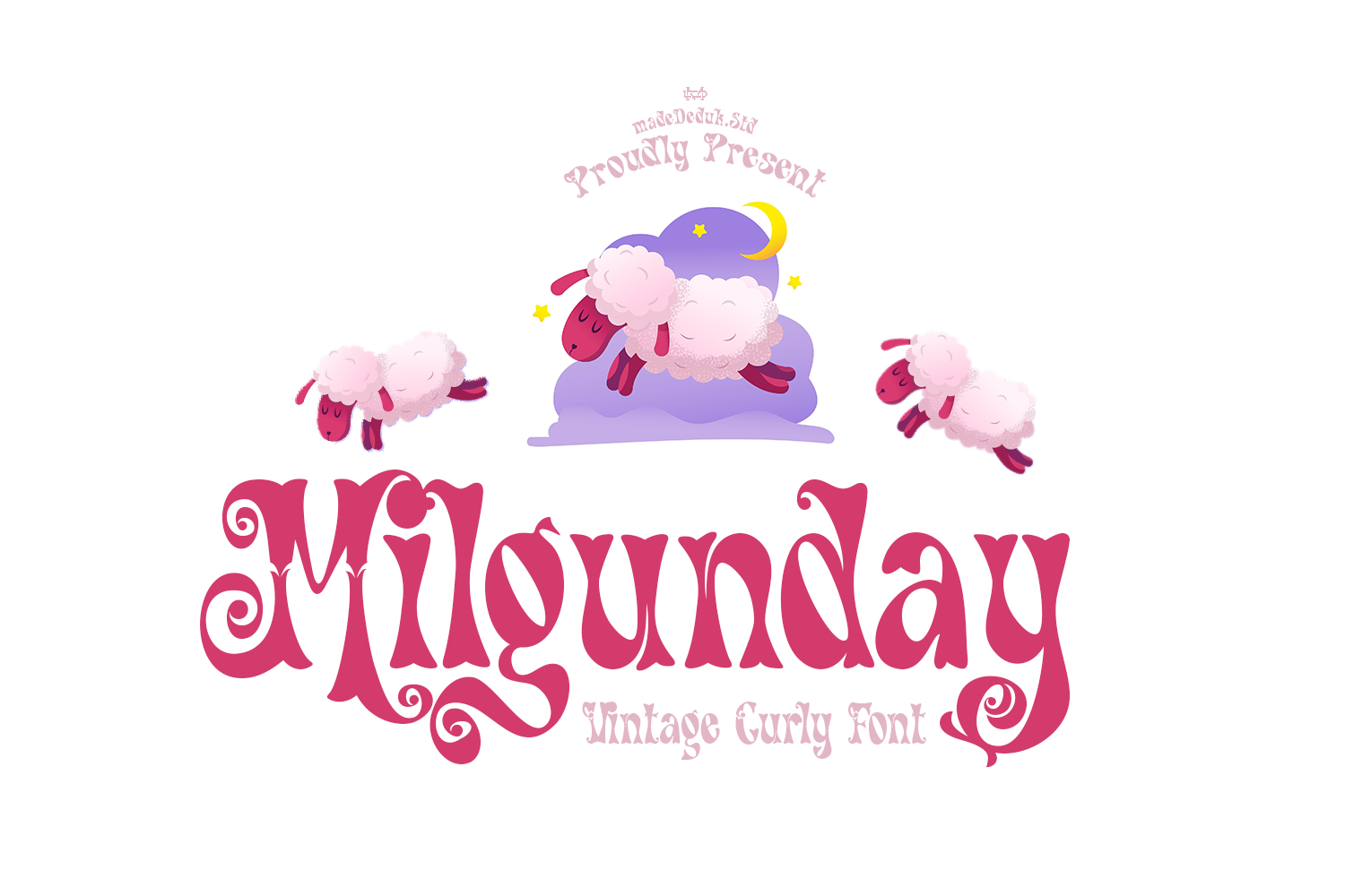 Introducing Milgunday, a vintage typeface that features a unique style characterized by bold, curved, and textured letterforms, imparting an artistic and experimental feel. This font provides numerous alternates and ligatures, enhancing its versatility, making it suitable for creative projects that aim to stand out as unique, bold, and distinctive. Perfect for various advertising purposes, it is ideal for both digital content and printed materials, ensuring your designs capture attention and convey a memorable message.