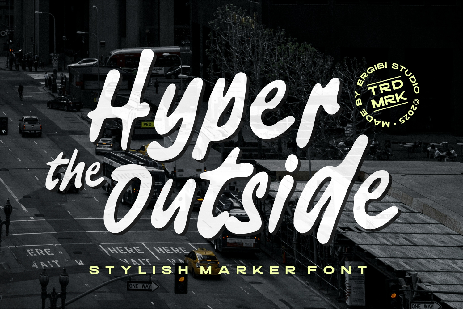 Hyper Outside is a high-energy display font bursting with bold strokes and raw character. Crafted entirely in uppercase, it radiates fearless urban attitude and a sense of motion in every letter. Perfect for streetwear branding, posters, album covers, quotes, product packaging, or any design that demands a bold, street-inspired aesthetic.