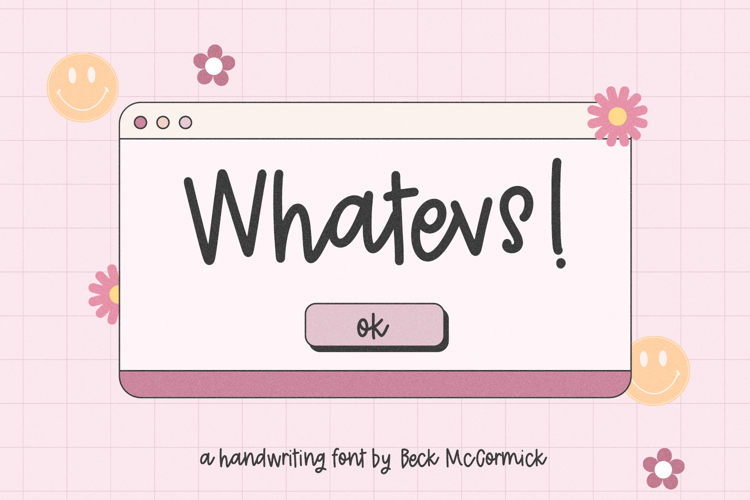 Whatevs Sans is a cute handwritten (mostly) sans font with a few connecting letters. This font is neat & tidy! Because of this, it would make a great addition to a teacher’s font collection, children’s books, or classroom decor. Whatevs Sans is also perfect for logos & branding, greeting cards, painted banners, digital planners, note-taking apps, Canva, Cricut projects, Silhouette projects, designing SVG files, laser cutting projects, & more.