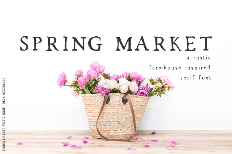 Spring Market is a farmhouse-style serif font. One of my first-ever releases, it was lovingly hand-drawn on an iPad. Spring Market has the perfect amount of rusticity and refinement for your next project. I recommend this font for logos, invitations, and your next home decor project that needs that shabby chic touch!