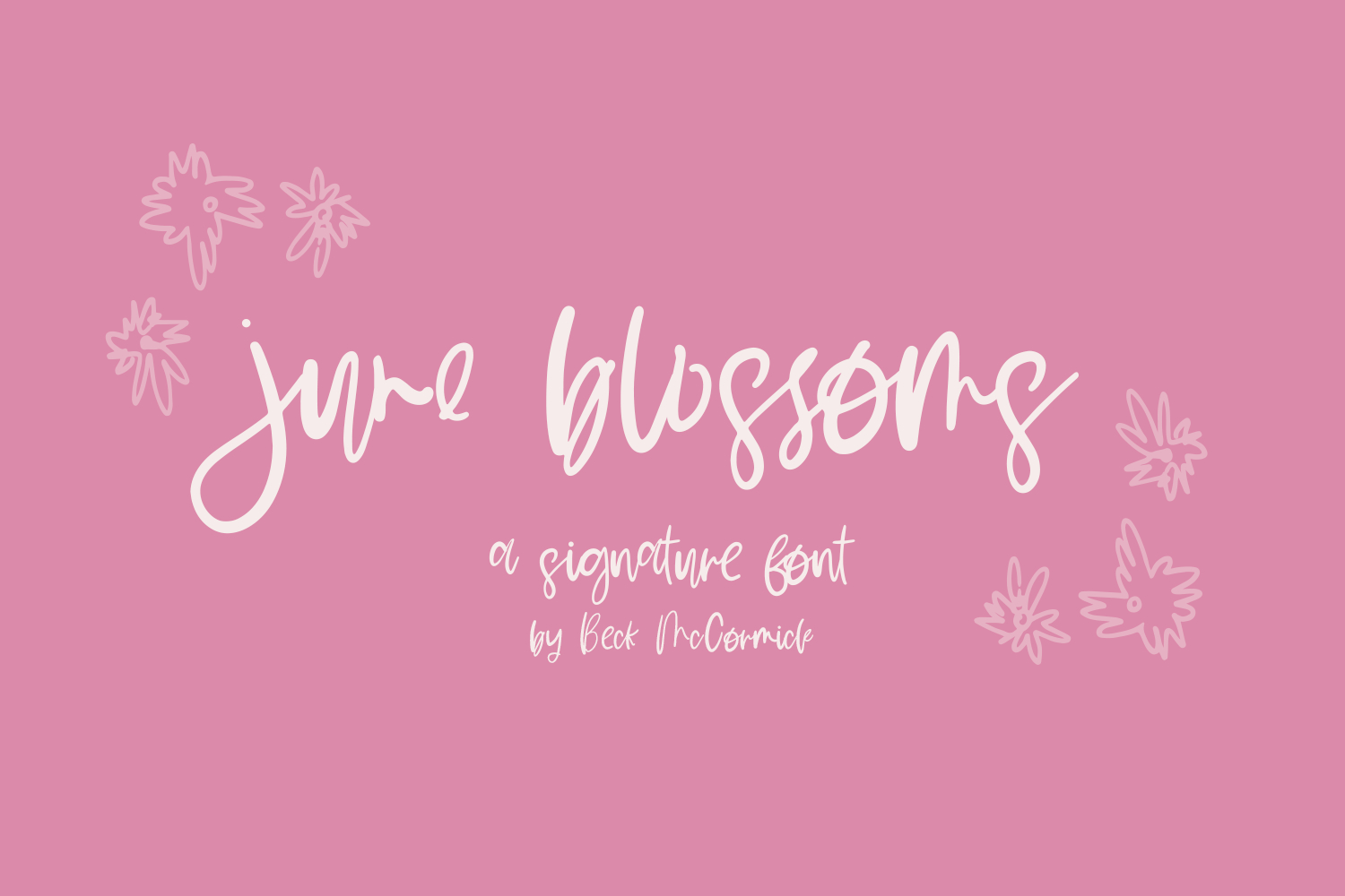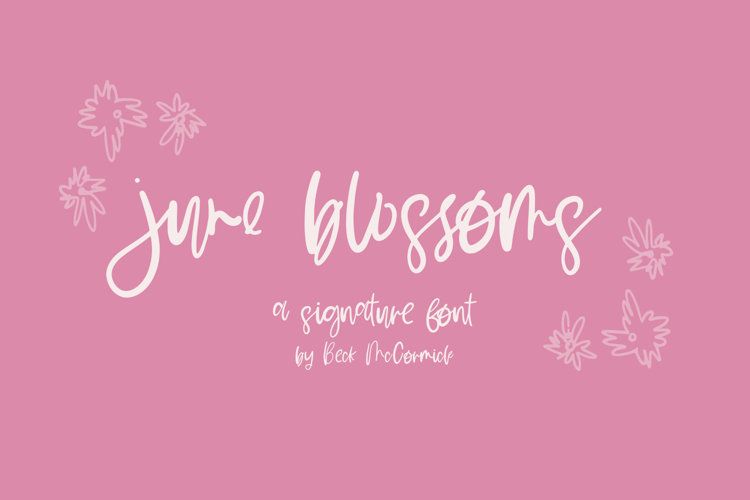 Introducing June Blossoms, a handwritten font. Its contemporary aesthetic makes it a perfect fit for effortlessly designing logos & branding, elegant paper products like wedding invitation suites, or for displaying content on your website. June Blossom’s handwritten appeal makes it a fantastic fit for signature-style logo designs. June Blossoms can also be used for other print design like magazines and flyers or printed marketing materials. This font can also be used for digital marketing materials and social media items!