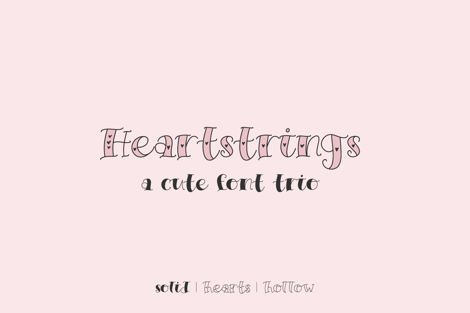 Say hello to Heartstrings, a serif trio. Heartstrings comes in solid, hollow, and with heart details. It would be the perfect fit for anything Valentine’s Day or love related, and is also great for playful crafting projects, eye-catching marketing materials, and more.