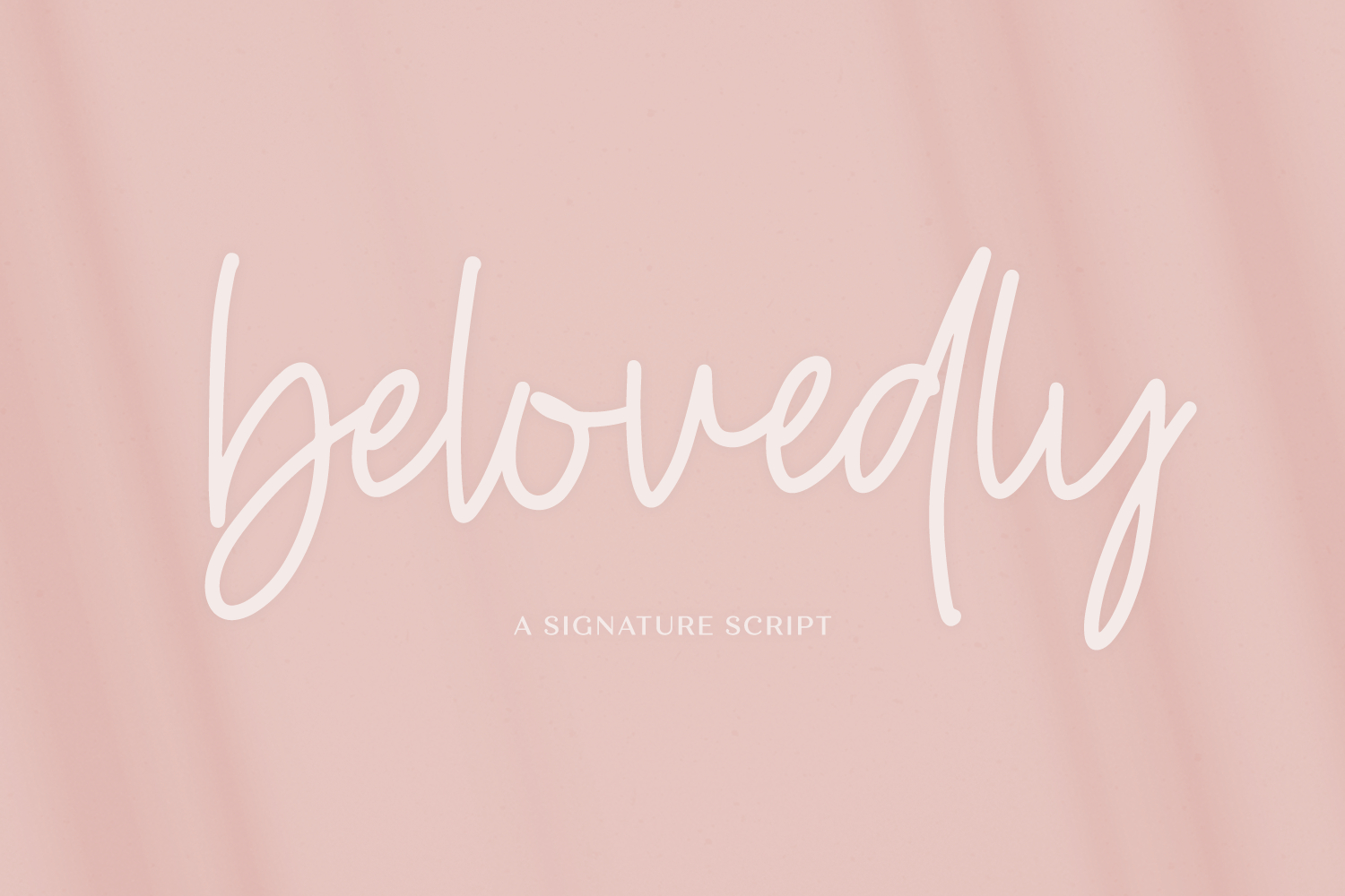 Meet Belovedly, a handlettered signature script with feminine flair. Belovedly has a messy, romantic feel and sports a second set of lowercase characters, as well as ligatures to customize the look of your text in your next project!