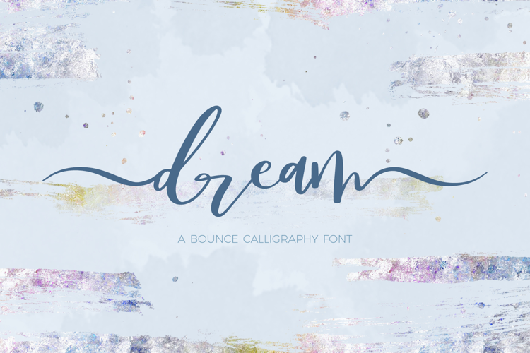 Dream is a bounce calligraphy font, featuring two different swash options, with both left and right swashes, and a few ligatures. Its up & down baseline makes it visually interesting, and perfect for modern branding, invitations, or quote graphics. Dream is PUA-encoded, making its extensive features easy to access.
