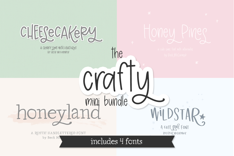 Introducing the Crafty Mini Bundle, which includes four feature-packed fonts.