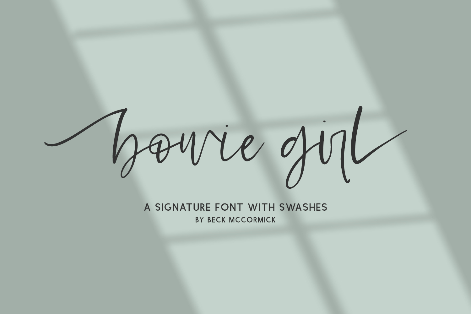 Introducing Bowie Girl, a modern handwriting font. Bowie Girl mimics handwriting, and is a little messy, and a little bouncy, perfect for trendy, modern projects. This font includes ligatures to enhance the handwritten look, as well as left and right swashes on all lowercase characters to add a little extra something!
