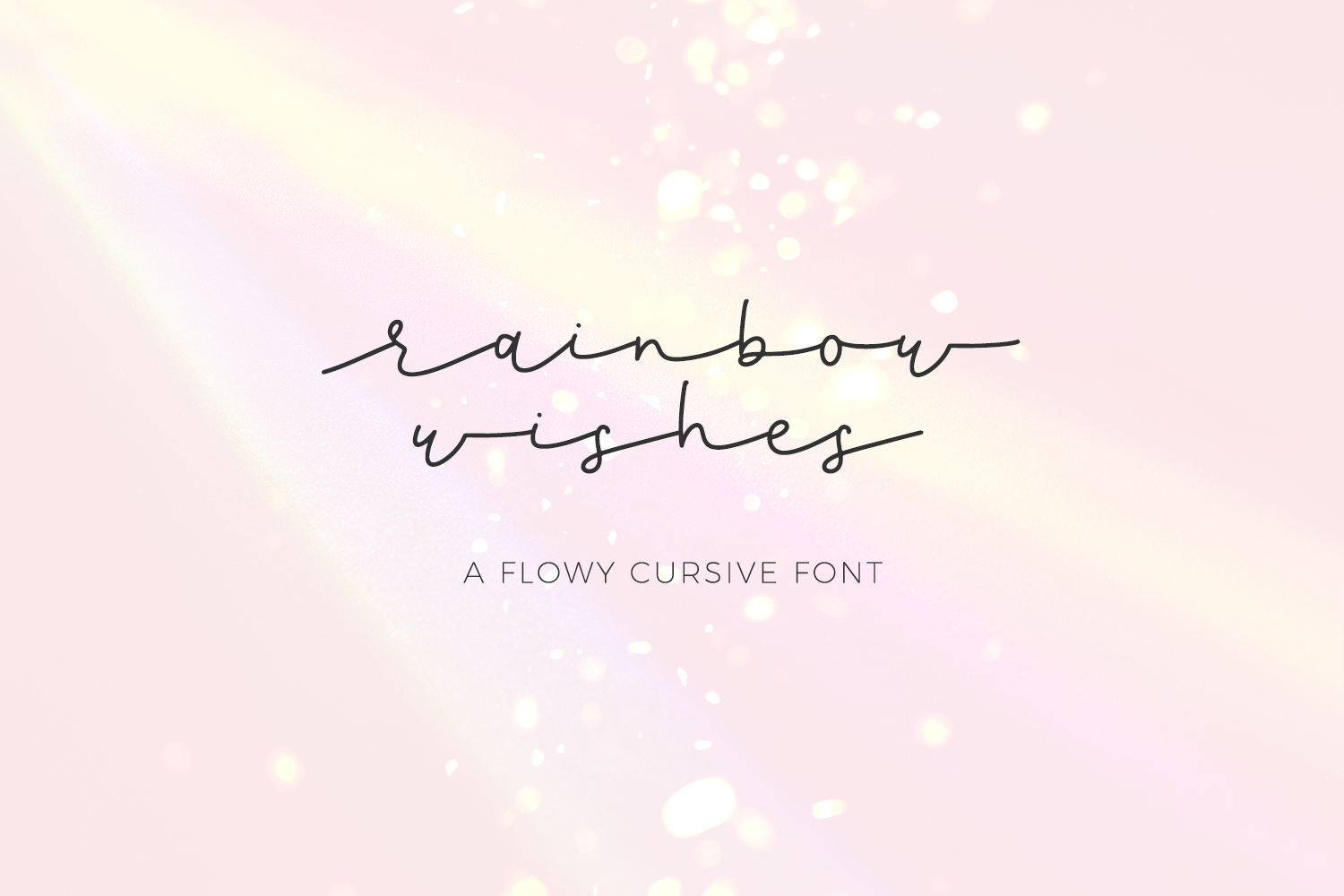 Introducing Rainbow Wishes, a flowy cursive font with thin lines. Rainbow Wishes is perfect for wedding invitations, greeting cards, social media posts, marketing materials, watermarks, logos & branding, or quote graphics, Canva, Cricut projects, Silhouette projects, designing SVG files, laser cutting projects, & more.