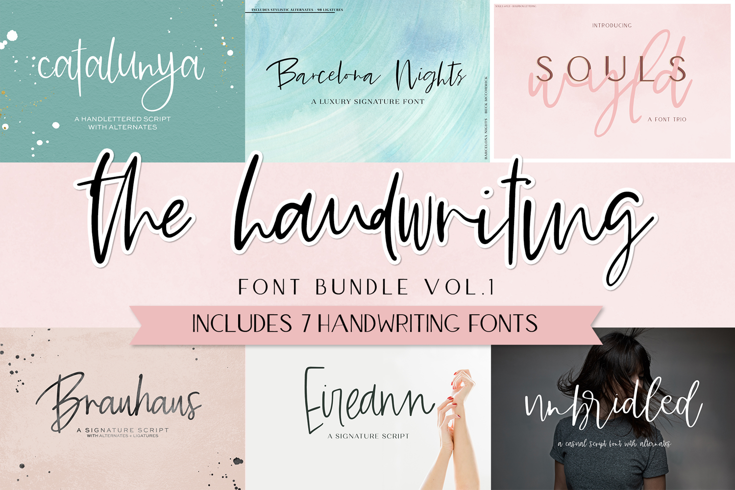 The Handwriting Font Bundle is the new chic, stylish bundle for all of your handwritten font needs! This bundle includes seven top sellers that are modern, trendy, and contemporary. The best part? Each font has so many alternates + ligatures that customization is a total breeze - you can truly make your project look handwritten effortlessly! Bonus: Souls Wyld, a signature style script, comes with two sans fonts that pair perfectly with any of the fonts included in this bundle!