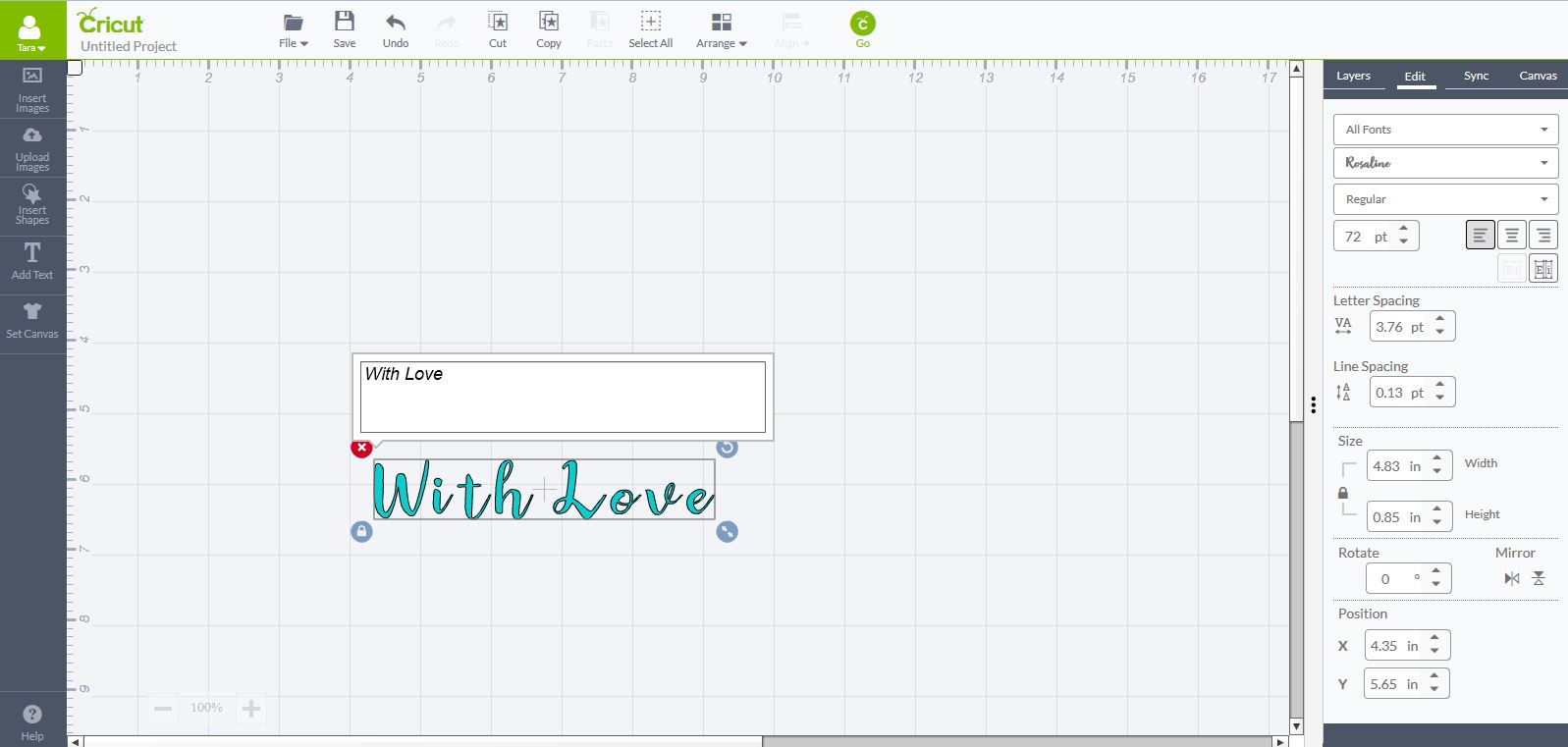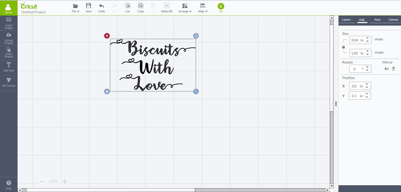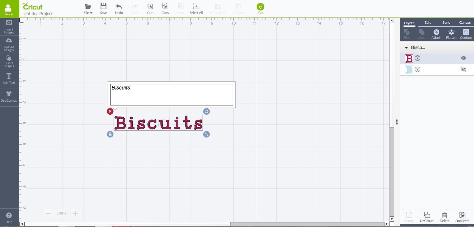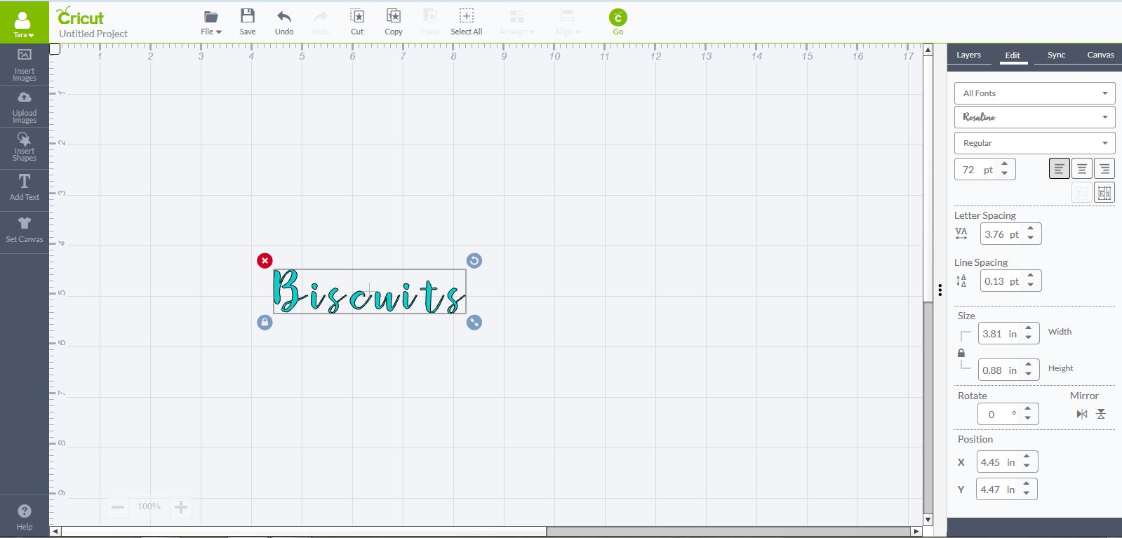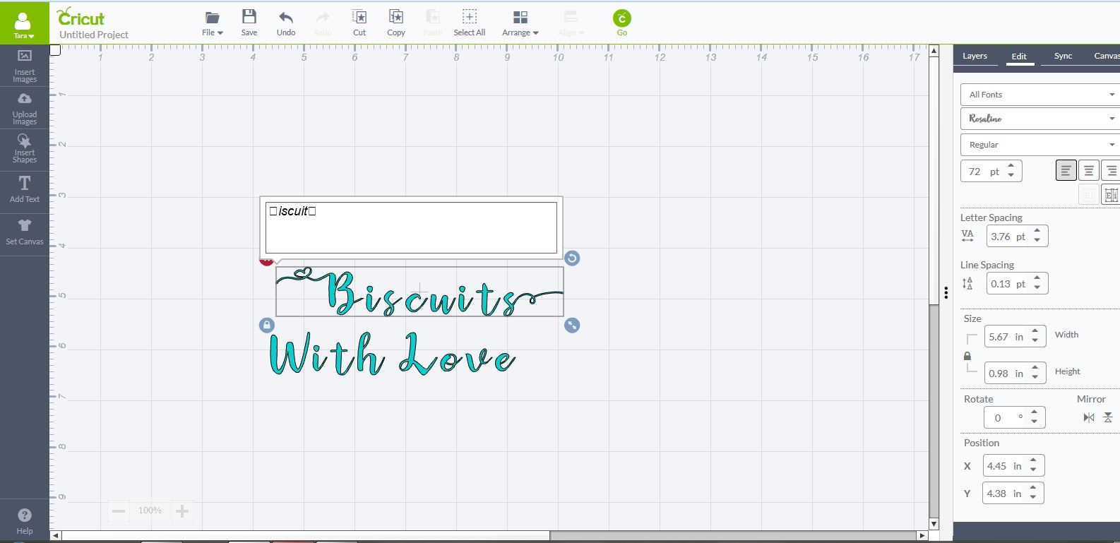 1- Open up Cricut Design Space. Type what you would like your label to read.
