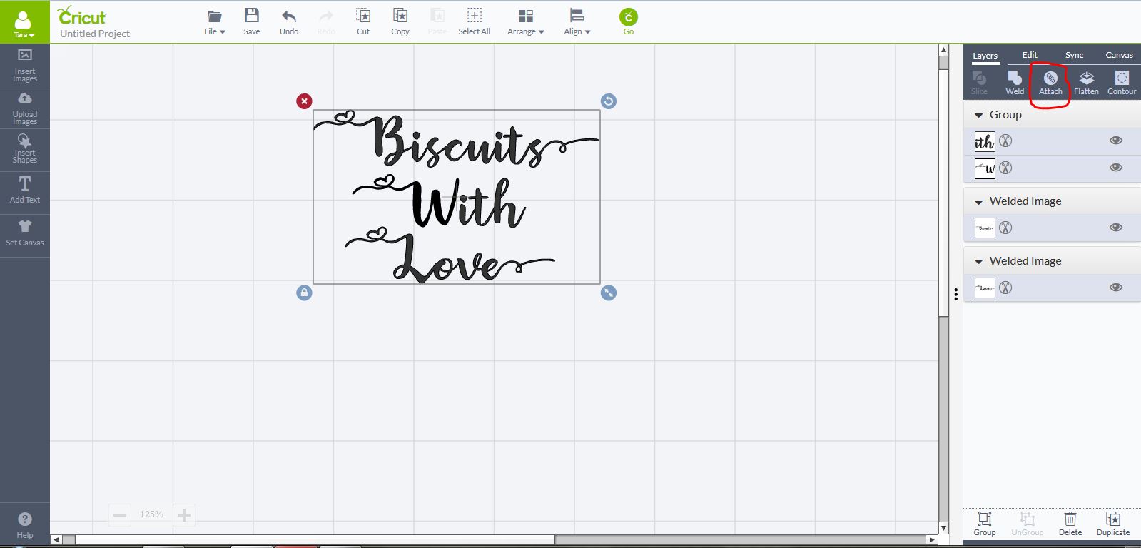 13- Â Once grouped, you will need to select "attach". By doing this your cut file will stay together when going to the Cricut go button and cutting.