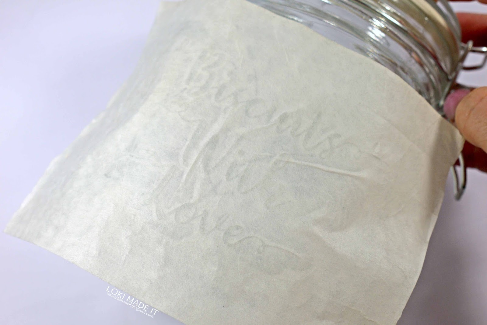 20- Slowly peel off the transfer tape, leaving the vinyl on the jar.