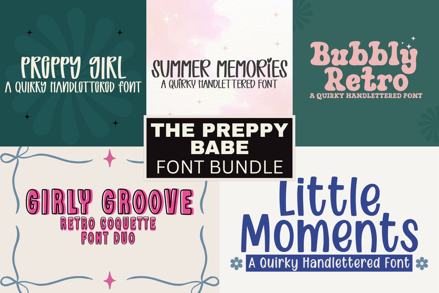 The Preppy Babe Font Bundle brings together six fun, quirky, and hand-lettered fonts perfect for all things cute, retro, and preppy.
