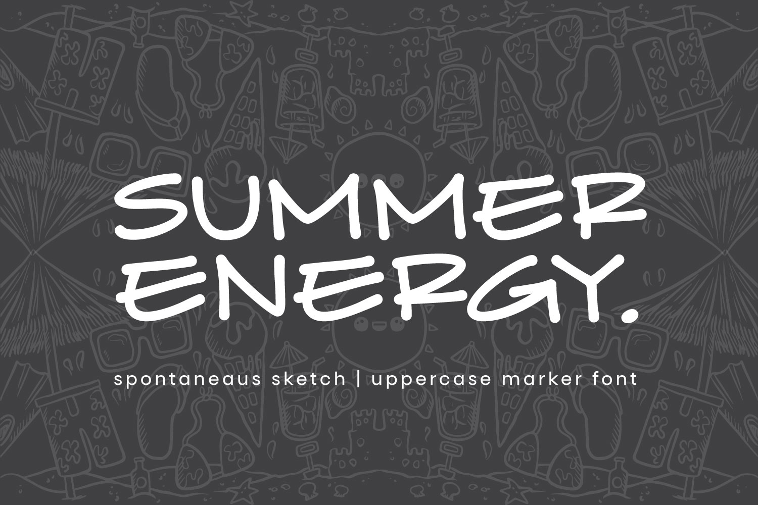 Summer Sketch is a bold, all-uppercase marker font inspired by the raw charm of spontaneous handwriting. Its form reflects the energy of quick, confident strokes, similar to the natural flow of an architect’s hand sketching freely on paper. Each letter is casual and imperfect, yet intentional, creating a rhythm that feels expressive, and full of character.