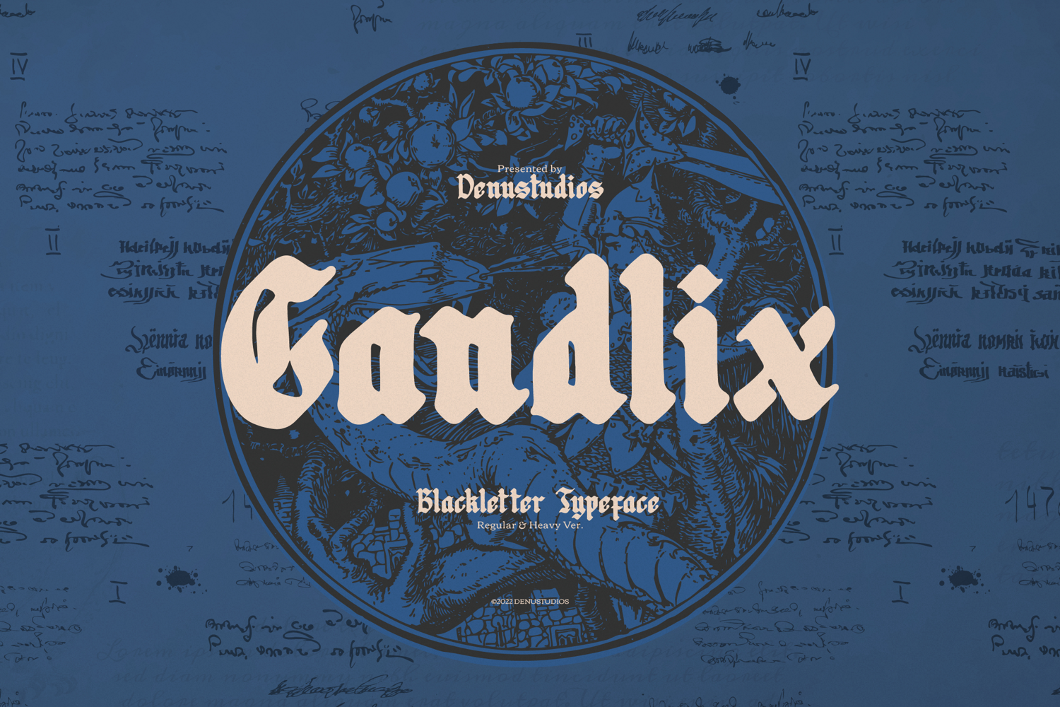 Candlix | Blackletter Typeface, from Denustudios, suitable for any projects such as: logos, branding projects, homeware designs, product packaging, mugs, quotes, posters, shopping bags, t-shirts, book covers, name card, invitation cards, greeting cards, label, photography, watermark, special events, and all your other lovely projects that need a Blackletter taste.
