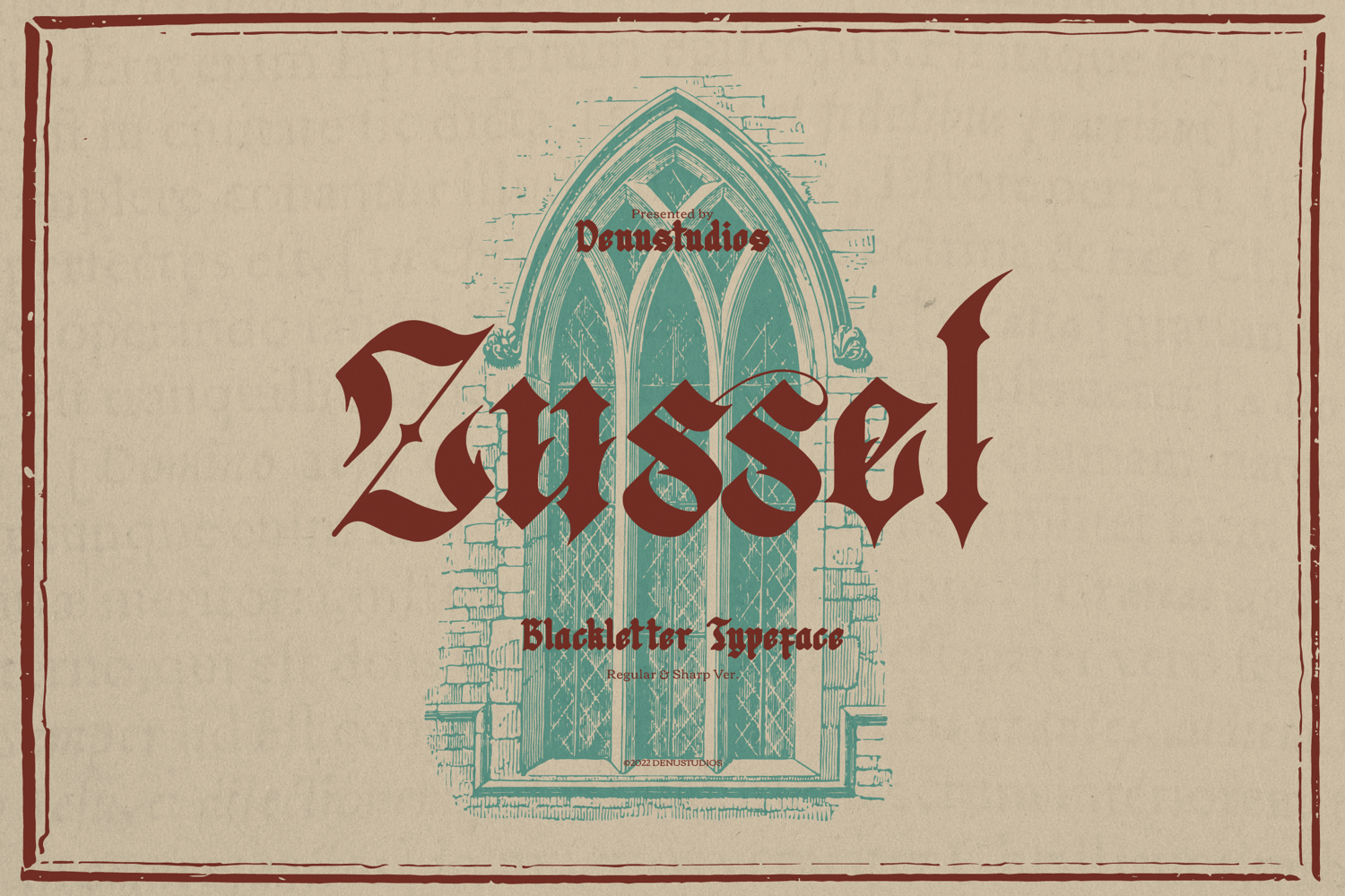 Zussel | Blackletter Typeface, from Denustudios, suitable for any projects such as: logos, branding projects, homeware designs, product packaging, mugs, quotes, posters, shopping bags, t-shirts, book covers, name card, invitation cards, greeting cards, label, photography, watermark, special events, and all your other lovely projects that need a Blackletter taste.