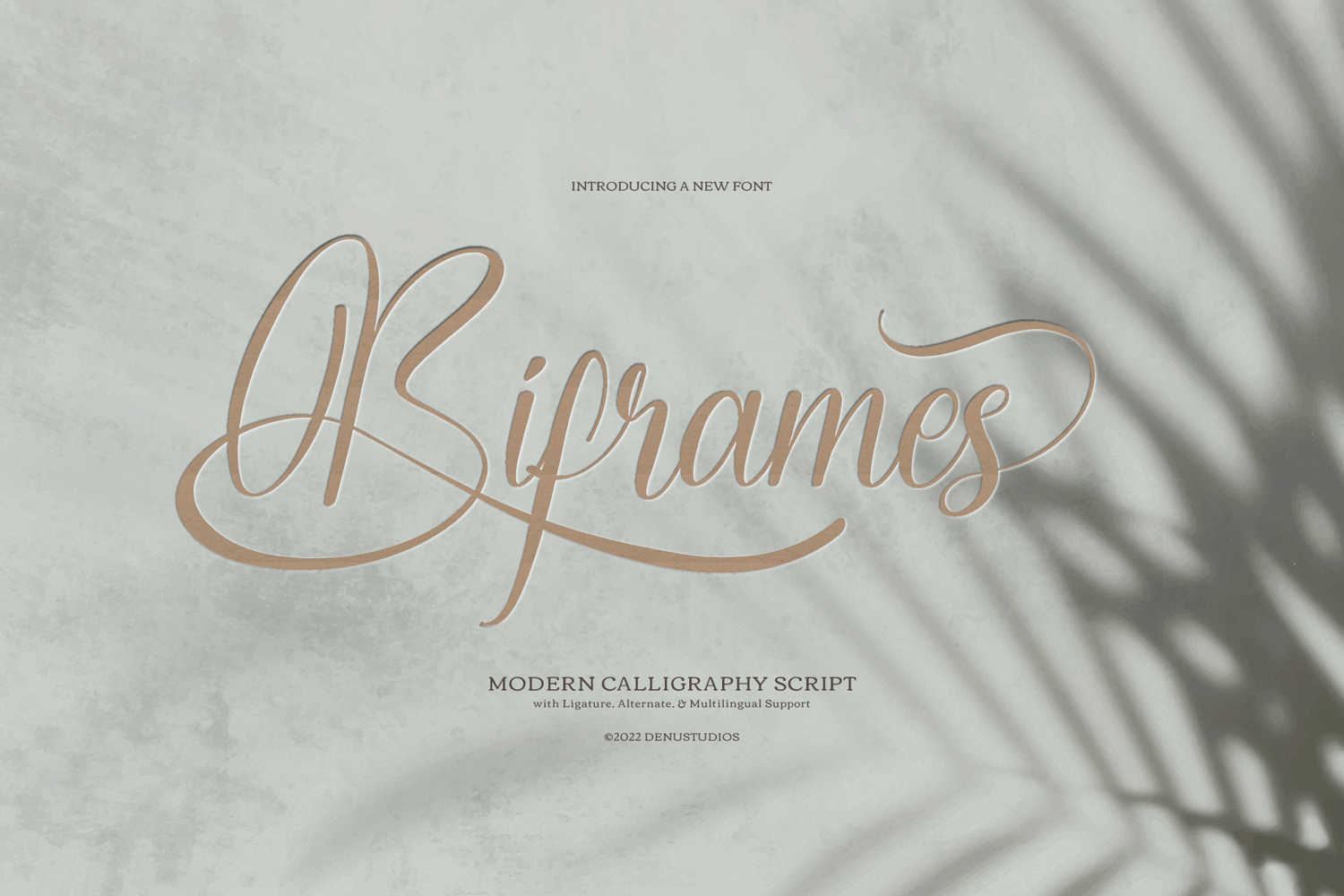 Biframes | Beauty Calligraphy Script, from Denustudios, suitable for any projects such as: logos, branding projects, homeware designs, product packaging, mugs, quotes, posters, shopping bags, t-shirts, book covers, name card, invitation cards, greeting cards, label, photography, watermark, special events, and all your other lovely projects that need a Script taste.
