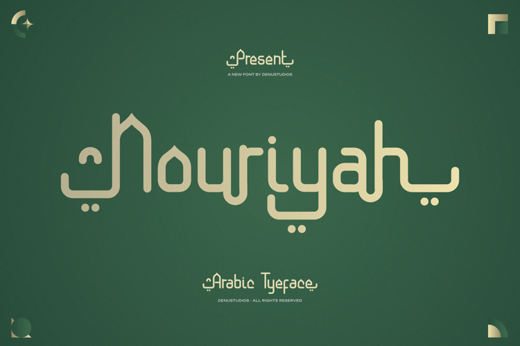 Nouriyah | Arabic Typeface, from Denustudios, suitable for any projects such as: logos, branding projects, homeware designs, product packaging, mugs, quotes, posters, shopping bags, t-shirts, book covers, name card, invitation cards, greeting cards, label, photography, watermark, special events, and all your other lovely projects that need a Arabic taste.