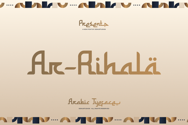 Ar Rihala | Arabic Typeface, from Denustudios, suitable for any projects such as: logos, branding projects, homeware designs, product packaging, mugs, quotes, posters, shopping bags, t-shirts, book covers, name card, invitation cards, greeting cards, label, photography, watermark, special events, and all your other lovely projects that need a Arabic taste.