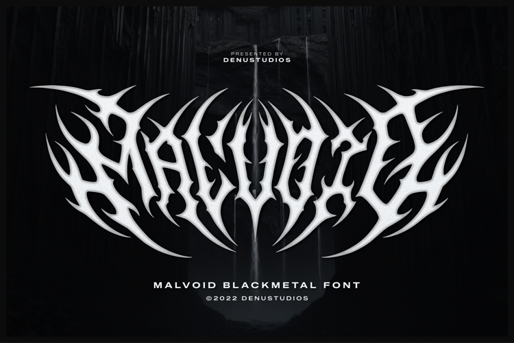 Malvoid | Black Metal Font, from Denustudios, suitable for any projects such as: logos, branding projects, homeware designs, product packaging, mugs, quotes, posters, shopping bags, t-shirts, book covers, name card, invitation cards, greeting cards, label, photography, watermark, special events, and all your other lovely projects that need a Black Metal taste.