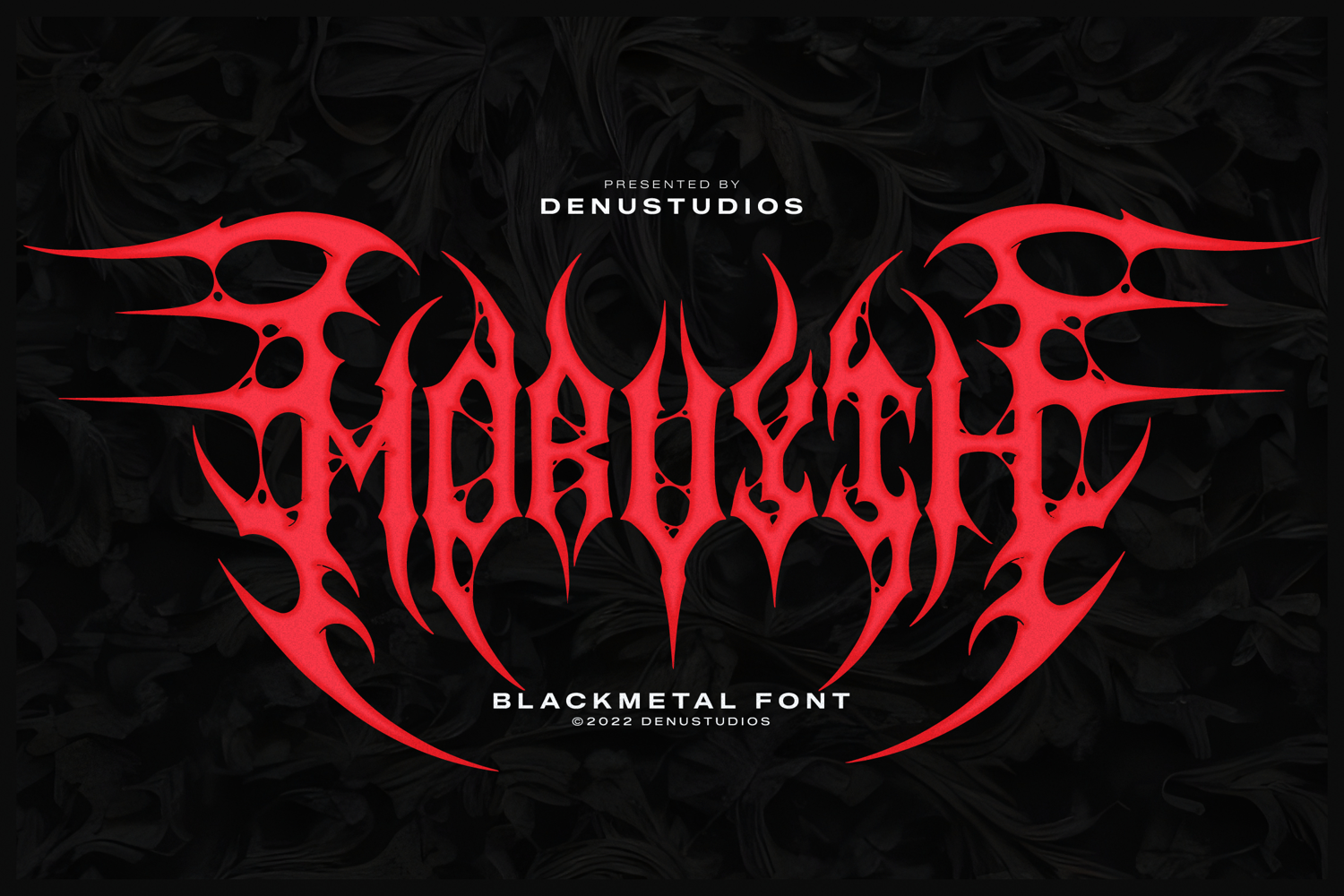 Morvyth | Black Metal Font, from Denustudios, suitable for any projects such as: logos, branding projects, homeware designs, product packaging, mugs, quotes, posters, shopping bags, t-shirts, book covers, name card, invitation cards, greeting cards, label, photography, watermark, special events, and all your other lovely projects that need a Black Metal taste.