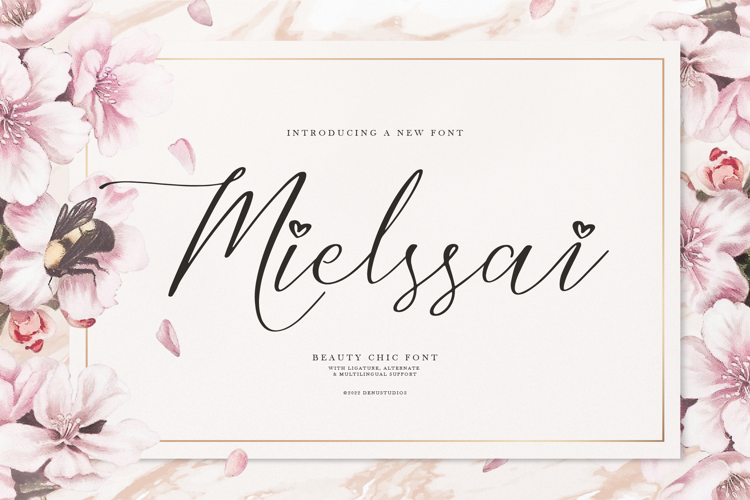 Mielssai | Beauty Chic Font, from Denustudios, suitable for any projects such as: logos, branding projects, homeware designs, product packaging, mugs, quotes, posters, shopping bags, t-shirts, book covers, name card, invitation cards, greeting cards, label, photography, watermark, special events, and all your other lovely projects that need a Script taste.