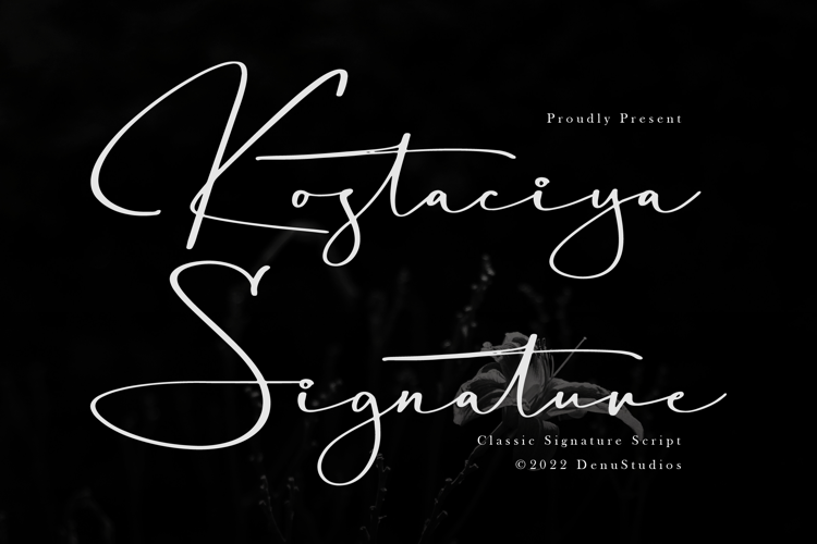 Kostaciya | Classic Signature Script, from Denustudios, suitable for any projects such as: logos, branding projects, homeware designs, product packaging, mugs, quotes, posters, shopping bags, t-shirts, book covers, name card, invitation cards, greeting cards, label, photography, watermark, special events, and all your other lovely projects that need a Script taste.