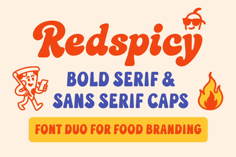 Redspicy is a bold and playful duo font made for food lovers and creative branding! Featuring a smooth serif and a clean sans serif, this font captures the energy of tasty visuals—from restaurant logos to spicy packaging. With rounded curves and a cheerful rhythm, Redspicy is the perfect ingredient for bold headlines, menu layouts, and merch that stands out.