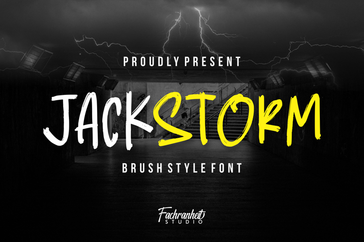 Jackstorm is a brush style font. It can easily be matched to an incredibly large set of projects and use it for movie posters, flyers, headline, logo, logotype, packaging and much more!, so add it to your creative ideas and notice how it makes them stand out!