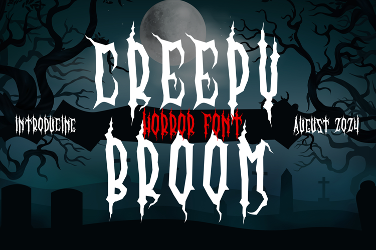 Creepy Broom is a terrifying Halloween display font that perfectly captures the essence of spooky and horror-themed projects. With its menacing and eerie characters, this font adds a spine-chilling touch to any design. Ideal for Halloween invitations, posters, banners, and decorations, Creepy Broom enhances the atmosphere of fear and suspense. The font's unique and frightening style makes it stand out, ensuring your projects leave a hauntingly memorable impression. Whether you're creating party invites, event flyers, or eerie decorations, Creepy Broom brings an authentic horror feel to your designs. Embrace the fear and make your Halloween projects terrifying with Creepy Broom, the perfect choice for adding a ghoulishly perfect finish to your creative works.
