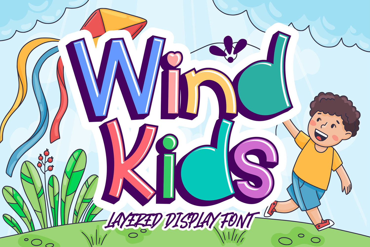 Elevate your designs with Wind Kids – the Cute Layered Display Font that combines playfulness, versatility, and charm. Ideal for making a delightful visual impact, Wind Kids is your go-to font for adding a fun and engaging touch to any project.