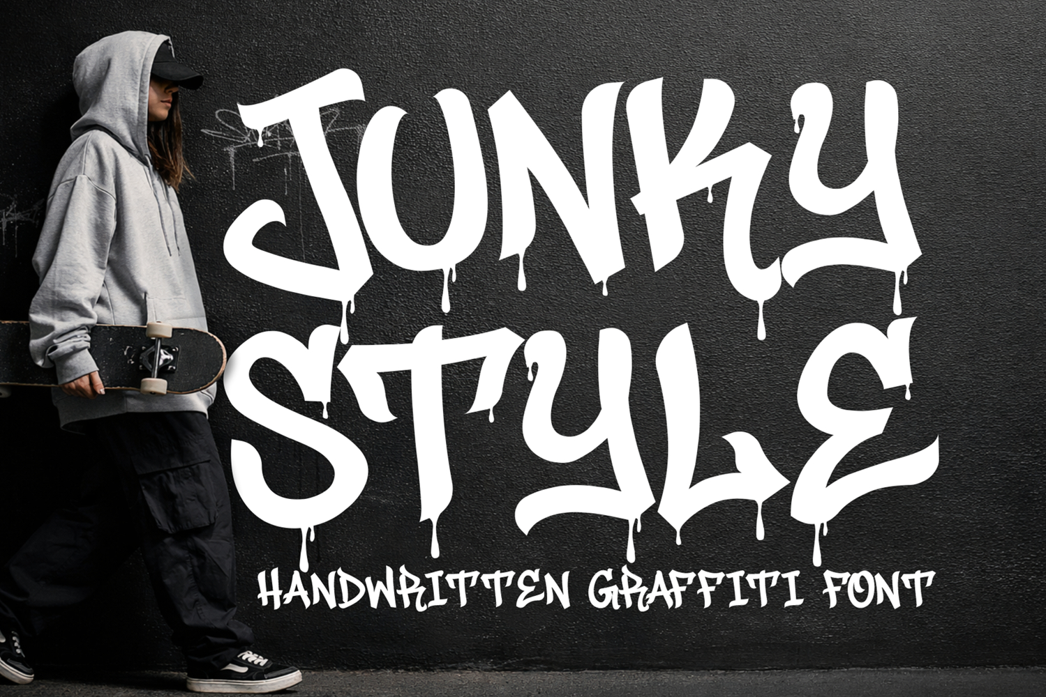 Overall, Junky Style is more than just a typeface—it’s a creative tool that allows designers to express individuality and capture the essence of urban culture. Its combination of bold design, versatility, and authentic street-inspired aesthetics makes it a must-have for anyone looking to create impactful and memorable designs.