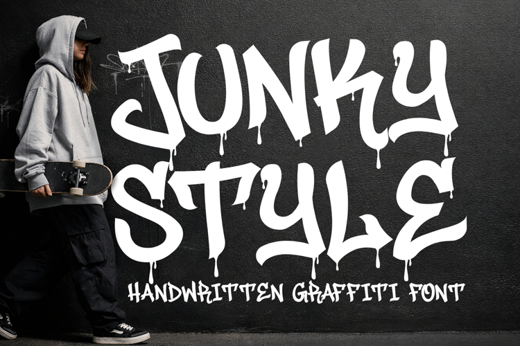Junky Style is a powerful graffiti display font that embodies the raw spirit of urban street culture. Inspired by the expressive nature of street tagging and spray paint art, this typeface delivers a bold and unapologetic visual identity. Its defining feature lies in its dripping letterforms, which simulate the effect of fresh paint running down surfaces, creating a sense of motion, energy, and authenticity.