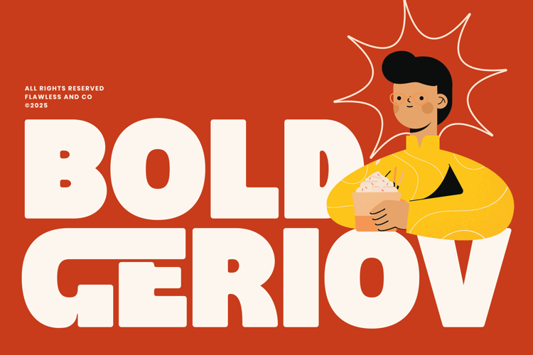 Bold Geriov is a must-have for designers who want their work to feel lively, bold, and instantly recognizable. Its chunky shapes and playful curves make every design stand out, helping you create branding, titles, and visuals that feel confident, creative, and full of personality.