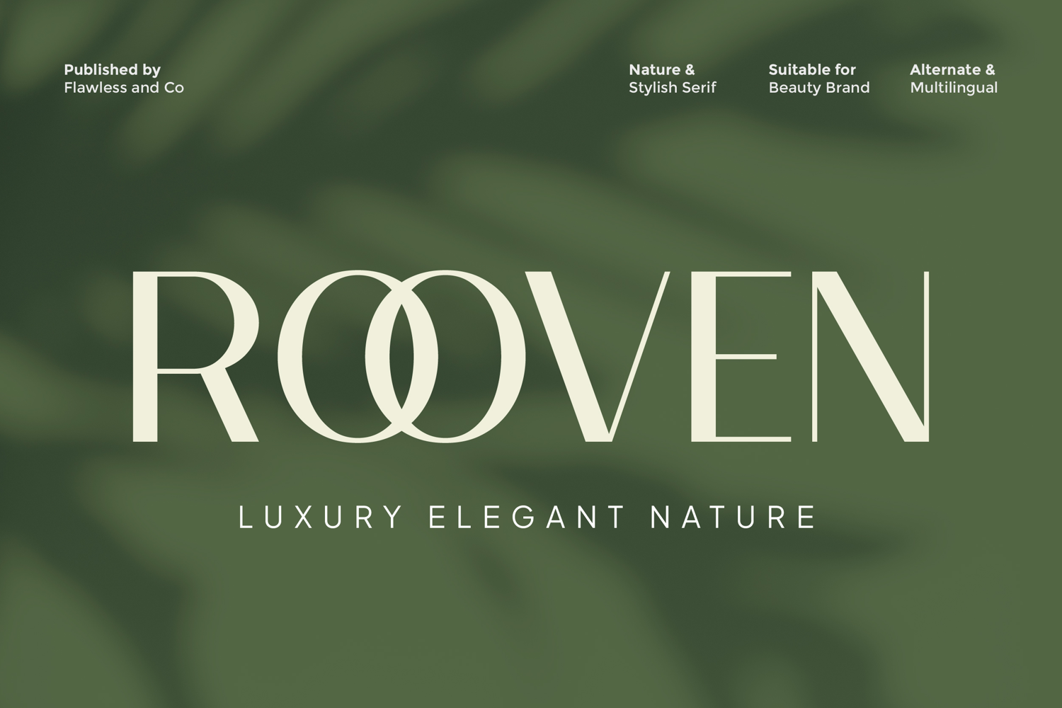 Rooven is an elegant serif font crafted to express luxury, refinement, and natural beauty. With its stylish letterforms and balanced proportions, Rooven delivers a sophisticated look that feels timeless yet modern. This font is designed to elevate visual identities with a calm, premium, and graceful character.