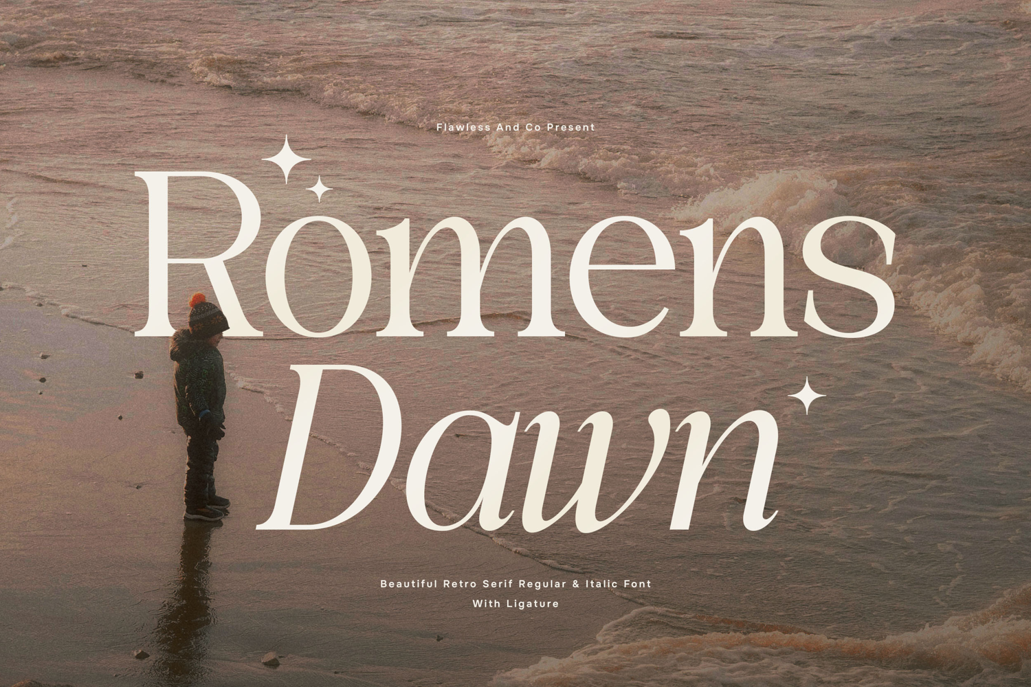 Romens Dawn is a retro serif duo font crafted to deliver a timeless and beautiful appealing typographic style. Combining regular and italic versions, this font offers a versatile design solution for creating elegant and expressive layouts. Inspired by vintage typography, Romens Dawn features refined serif shapes, smooth curves, and balanced proportions that create a warm and classic atmosphere. The regular style provides structure and readability, while the italic style introduces a soft, flowing character that adds movement and emphasis to your text.