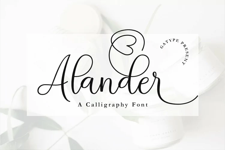 Alander script, suitable for creating text-based logos. Various alternatives and fasteners allow you to create a unique logo that better represents your product. Likewise, you can use it as a title for catalogs, zines, magazines, and publications that call for a modern sophistication.