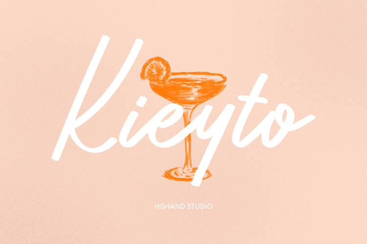 The letterforms are bold yet soft, with fluid connections that maintain good readability while preserving an informal, creative tone. Kieyto works well with clean layouts and soft color palettes, making it suitable for café branding, drink labels, menus, packaging, posters, and social media graphics. It is especially effective for logos and headlines that aim to feel friendly and modern.