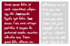 This holiday script is a fun, hand-written script featuring holly flourishes throughout.