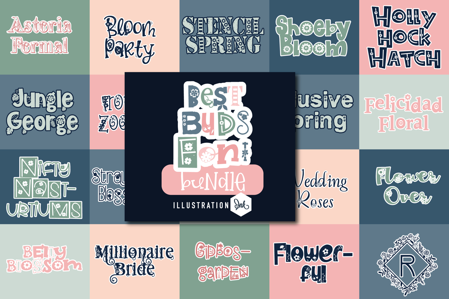 This hand-crafted font bundle contains 20 font families of cute, floral fonts! Zip file contains both the .otf and .ttf fonts!