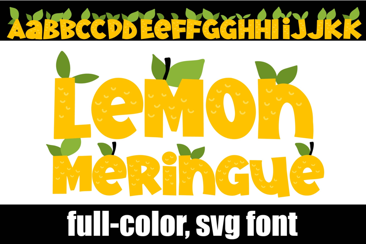 This hand-crafted font is a full-color font featuring lemons. There is an alt case of each letter with a different color combination.
