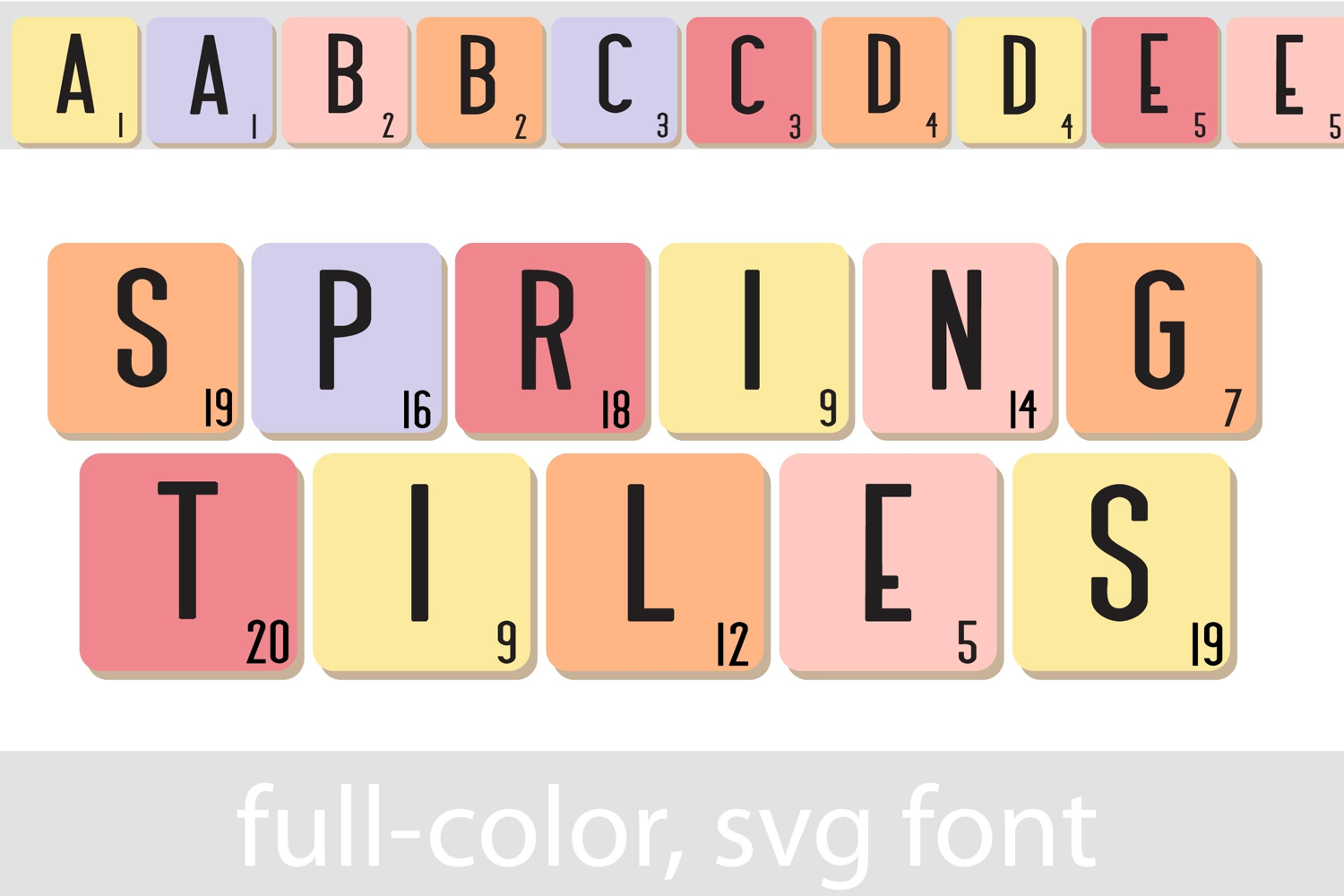 This full-color, sans serif font in springy palette of letter tiles. There is an alt case of additional colors of each letter that you can access through your system's character map.