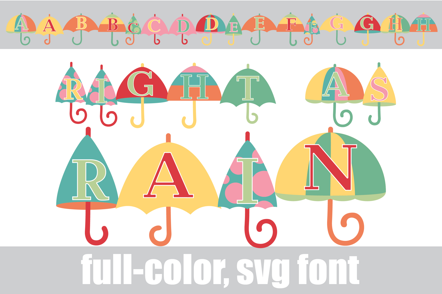 This full-color, font is serif lettering on spring umbrellas. There is an alt case of additional colors of each letter that you can access through your system's character map.