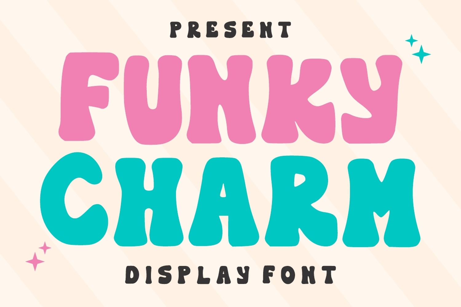 Funky Charm is a fun retro, groovy, display font. It features a dynamic effect and a unique charm. It is perfect for craft, mug, gift, headlines, banner events, kids posters, school posters, text effects, templates, logos, or name card.