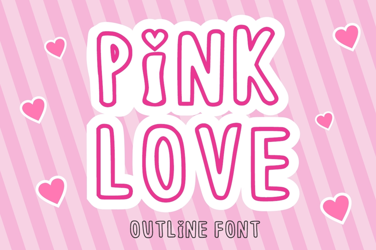 Pink Love is a delightful, bold outline font that captures a whimsical, hand-drawn aesthetic, perfect for designs that need a cute and energetic typography style.