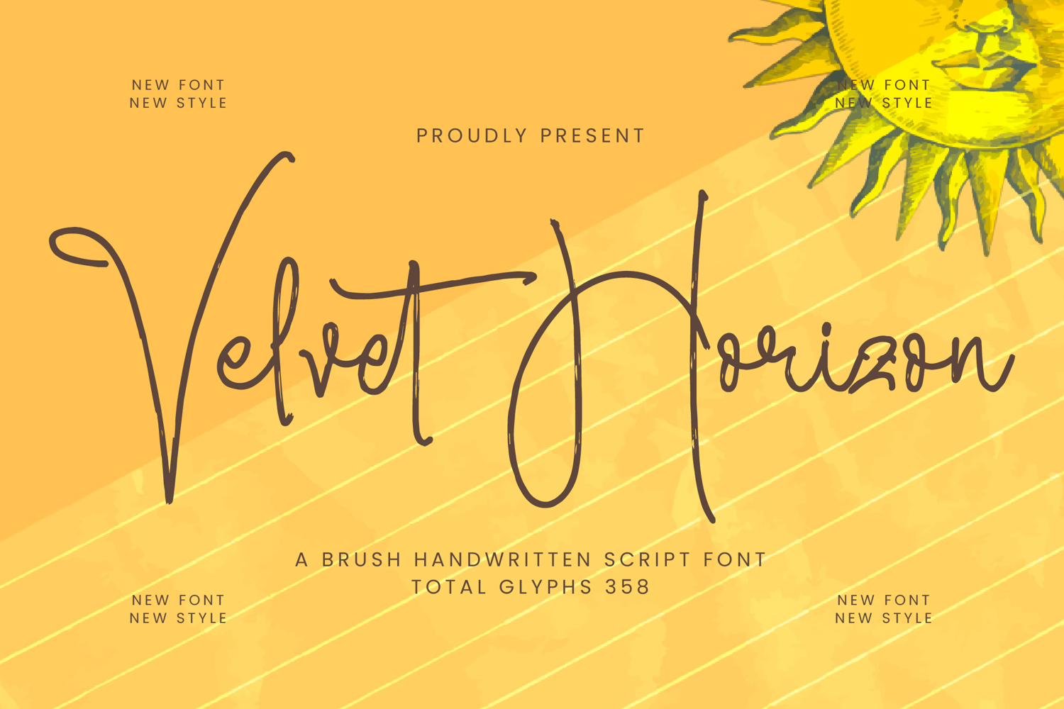 Velvet Horizon - A Brush Handwritten Script Font, from Integritype Studio, perfect for any project like: logos, branding projects, homewares designs, product packaging, mugs, quotes, posters, shopping bags, t-shirts, covers books, business cards, invitation cards, greeting cards, labels, photography, watermarks, special events and all your other luxury projects that require a premium taste.